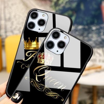 титульная страница > Электронная продукция > Пара Королева Король Корона Бриллиант Закаленное стекло Чехол для телефона для iPhone 13 12 11 SE 20