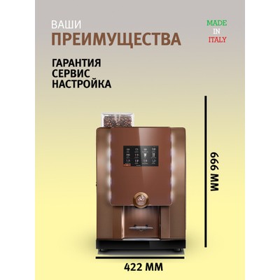 Возможности использования различных платежных решений, в том числе сервисного модуля Change Giver и монетоприемника с функцией выдачи сдачи, значительно увеличить количество проданных напитков без необходимости привлечения дополнительного персонала. Автоматизированная выдача исключает приготовление неоплаченных напитков.Вы можете подключить к ней модем и удаленно контролировать работу устройства и продажи из любой точки, где есть интернет. Кофе-машина Grande premium модельного laRhea V + предназначена для высокой проходимости и приготовления напитков большого объема формата Coffee to Go. Сенсорный экран с возможностью интерактивного общения с пользователем – вы можете транслировать сообщения и свой логотип, рекламу, информацию о напитках и менять ее по желанию.Увеличенный прозрачный бункер для зерна на 200 чашек зерновых напитков и до 4-х бункеров для растворимых ингредиентов дают максимум возможностей для составления вашей оригинальной кофейной карты. Вы можете настроить 48 вариантов напитков.Машина также может работать одновременно на сухом и на живом молоке.Включает в себя новейшие запатентованные технологии, обеспечивающие наивысшее качество приготавливаемых напитков:Varitherm – индукционный нагреватель воды, позволяющий не только экономить электроэнергию, но и обеспечивающий возможность приготавливать каждый напиток при идеальной для него температуре. Varitherm дает возможность устанавливать разную температуру воды для каждого клапана в одном напитке.Variflex –  профессиональный заварочный узел, позволяющий сварить напитки с использованием индивидуального количества кофе и обеспечивающий неизменное качество от чашки к чашке.Стандартная процедура промывки, полностью программируемая клавишами выбора или с помощью программного обеспечения Rheaction (опционально).Офисов, кафе, фастфудов, баров, отелей, АЗС.Примерное меню:48 напитков любых конфигураций и объемов, с молоком или без, с живым или растворимым – возможности практически безграничны!Рекомендации перед получением кофемашины от службы доставки для клиентовУважаемые клиенты, вы получаете настроенный автомат под наши ингредиенты, чтобы его настроить под ваши ингредиенты вам понадобиться: - высокоточные весы до 200 гр. - ингредиенты для кофемашинПорядок действий после получения автомата:- При сотруднике службы доставки вскрыть коробку и убедиться в целостности и сухости упаковки- Включить автомат в питание и убедиться в работоспособности автомата- Подписать акт полученияДалее, вам нужно либо самостоятельно произвести настройки кофемашины по вашим ингредиентам, либо обратиться за помощью к нашим партнерам в вашем регионе (данная услуга платная)При самостоятельной настройке, мы рекомендуем изучить инструкцию и посмотреть видеоинструкцию по калибровке кофе и ингредиентов для кофемашин Rheavendors
